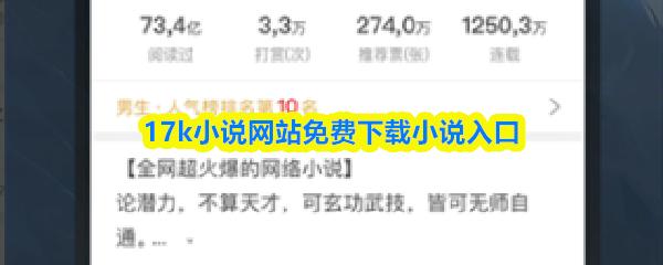 17k小说网站免费下载小说入口