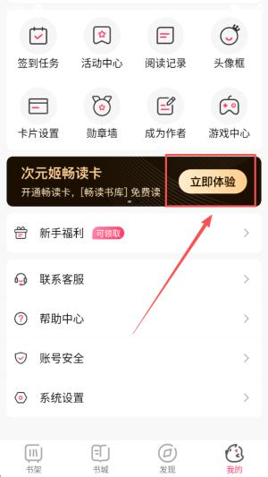 3、选择“立即体验”按钮,系统将引导您进入开通畅读卡的流程。
