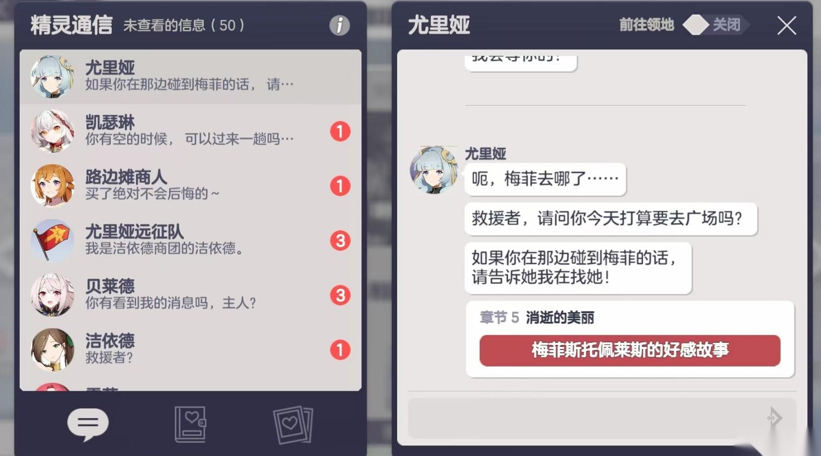精灵的好感结局需玩家将精灵好感培养至lv9方可解锁,所以大家可以先给精灵赠送礼物,提升她对自己的好感等级。等好感达到lv9后,再通过精灵通讯和该精灵聊天,从故事1开始,依次完成到故事7并完整体验所有剧情,就能看到好感故事的最终结局。每个精灵都有好结局、一般结局和坏结局三种,游戏会依据大家在前期剧情里的选择来决定最终的结局走向。