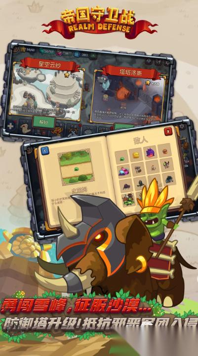 游戏里有很多和战争有关的内容,还有各种用来防守的设施,他们都有自己的特点。有的攻击范围非常的大,有的适合在固定的位置发挥最强的能力。游戏里大家熟知的一些三国角色,在这里都变成了指挥战斗的指挥官,大家不光可以亲手去规划防御布局,指挥军队展开激烈的对战,还能去感受三国时代特有的英雄气概和文化魅力,在热血的战斗中近距离的接触那段波澜壮阔的历史。