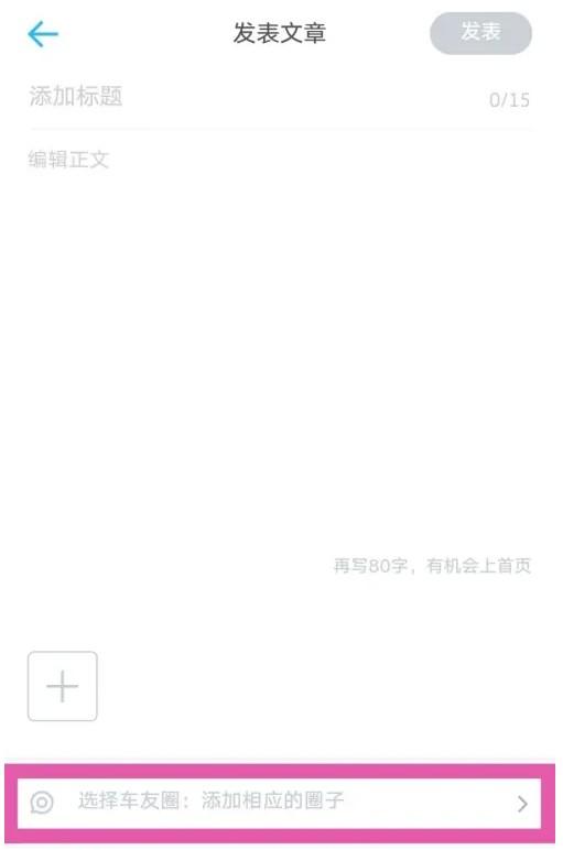 打开发表文章界面,选择发布的圈子。