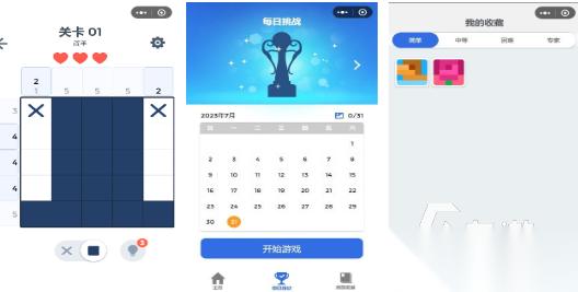 将数字推理结合象数艺术,行列边上标注的数字序列就是解题线索。需要根据数字判断方格有没有涂色,然后拼出完整的像素画作。亮点在于解题的过程,有逻辑推理的烧脑感,在完成之后,像素画也拥有较好的视觉成就感。操作只需要点击涂色,全程不需要联网,基本上每一局只需要几分钟。