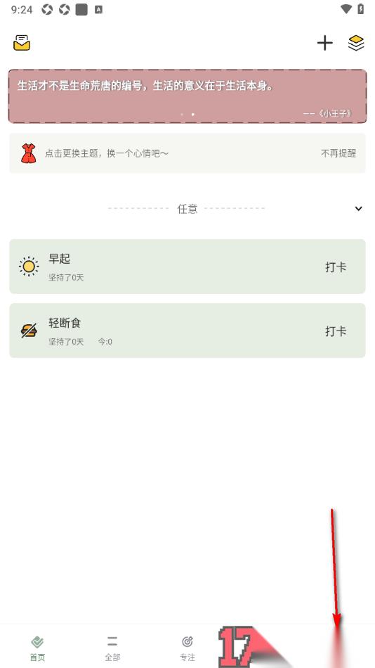 1.来到当前打开的小习惯app首页面上,将右下角显示的我的选项点击一下,即可进入到个人主页中。