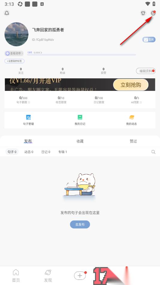 1.当我们将手机上安装好的句子控app点击打开之后,在打开的页面下方的位置选择我的选项,点击打开该选项即可。