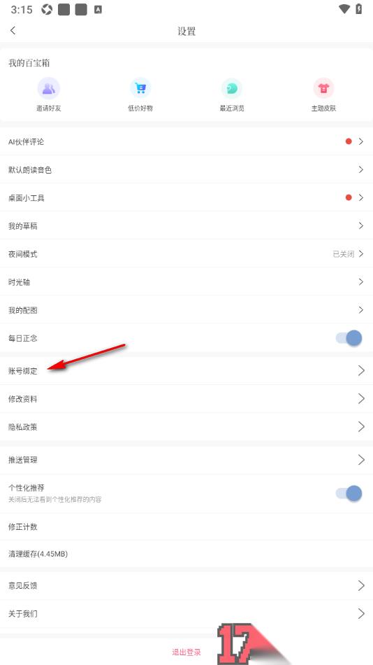 3.来到当前打开的页面上就可以查看到显示的功能选项,在这里找到其中的【账号绑定】选项,将其点击打开即可进入操作。