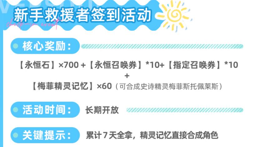 当前开放的双签到机制覆盖不同时间节点:其一是“新手救援者签到”,连续签满7日可获700颗永恒石、10张永恒召唤券及10张指定召唤券;其二是“上线纪念签到”,持续14日,总计发放2400颗永恒石与20张指定召唤券。两项叠加后共得3100颗永恒石,折合约10张永恒召唤券的价值,属于低投入高回报的固定收益。