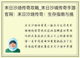 在末日沙城传奇这款游戏中,战斗力是衡量实力的关键指标。想要在游戏里称霸,提升战斗力必不可少。下面就为大家分享一些提升战斗力的有效方法。