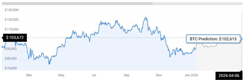 根据 CoinCodex BTC 统计数据目前,比特币的目标是在 2026 年 4 月达到 10.2 万美元大关。