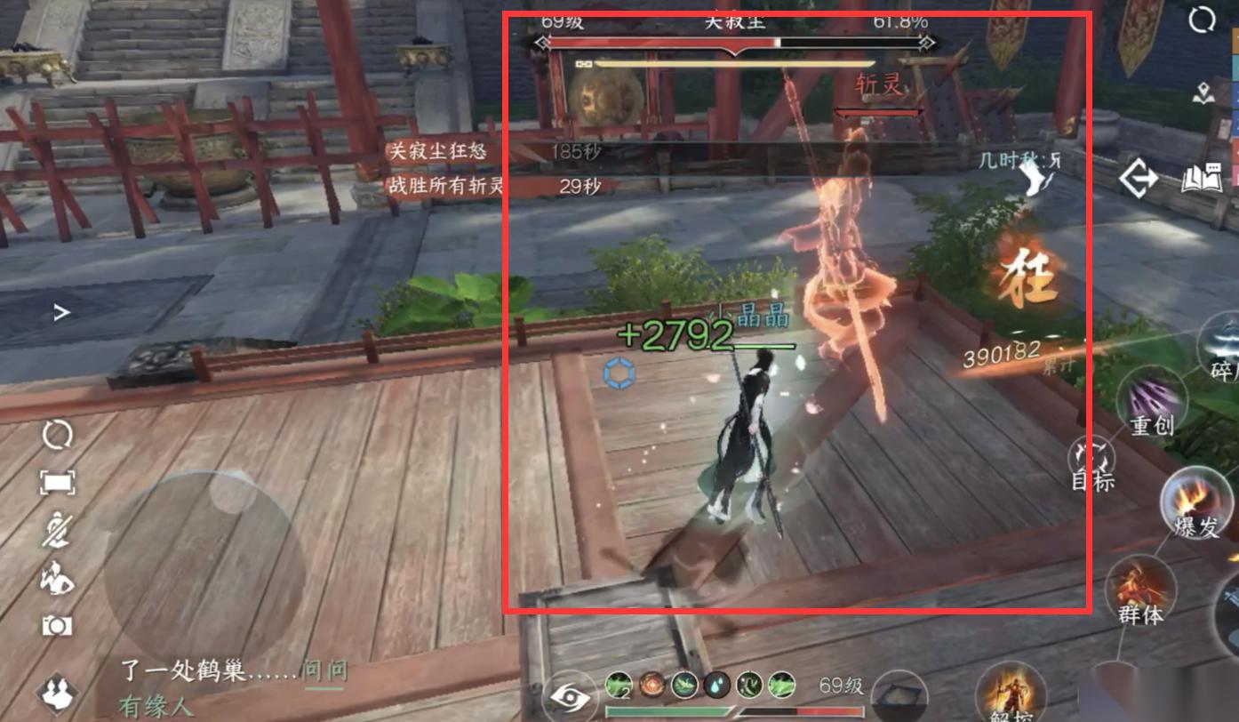 和斩灵一起进入挑战区不用点传送,需要在30秒内击败分散出来的两个斩灵,然后继续归位打关寂尘就好!