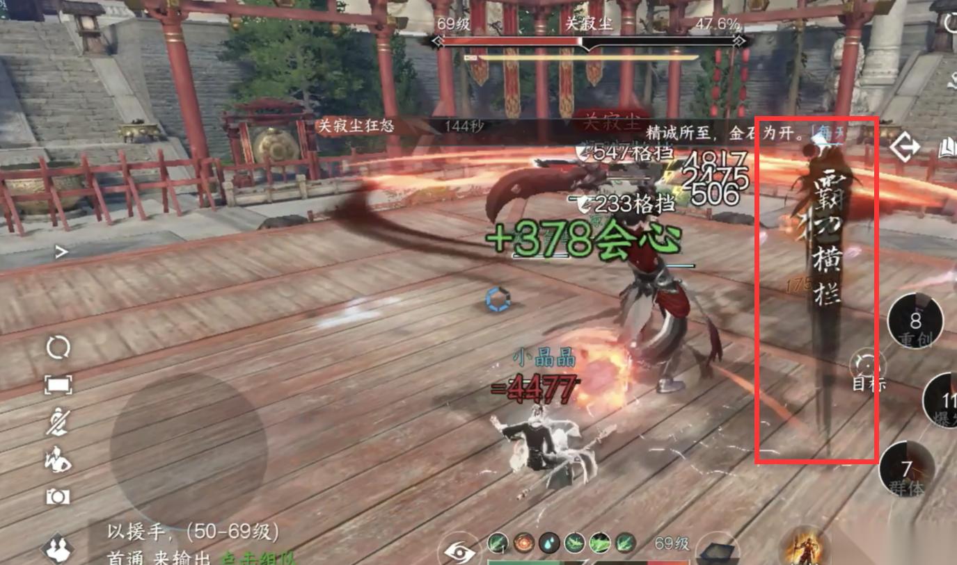 4.关寂尘释放霸刀横拦的时候如果挨到就放解控技能往出跑就好,伤害不是很高!