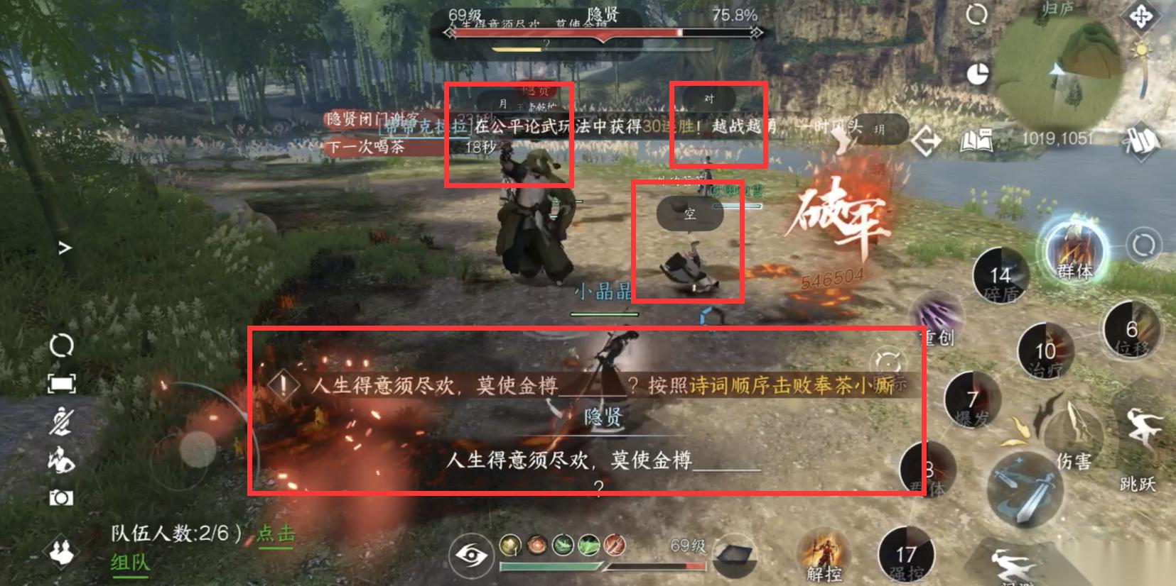 2.喝完茶后,奉茶小厮出来后不能在随意击败,而是要根据隐贤提供的诗句空白处的词按顺序击败,实在不知道怎么回事,可以提前打吧单人看看是什么机制就好!