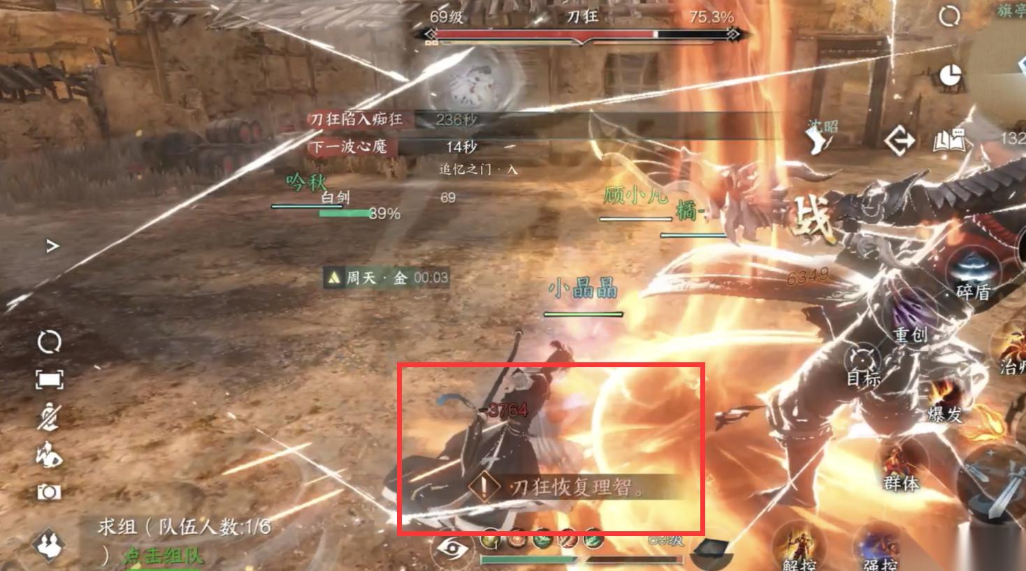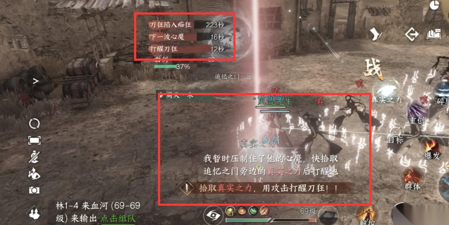 看到提示第一时间捡到真实之刃,出来后打一下刀狂即可让刀狂恢复理智,然后继续进去输出,有提示再出来即可,遛刀狂的不能进去哦~