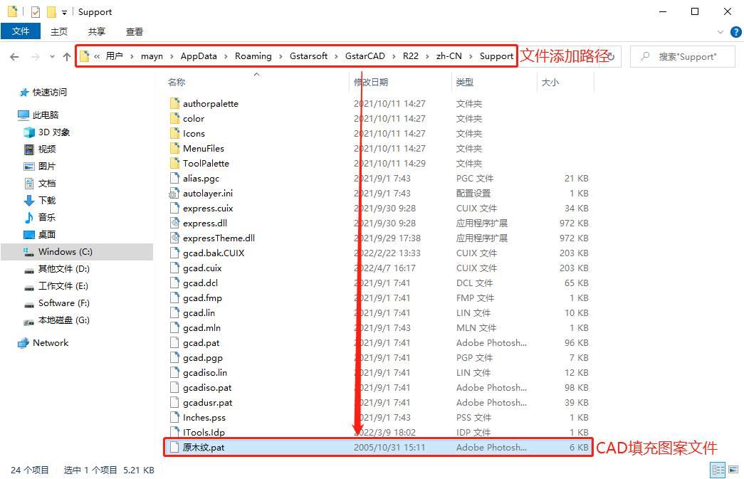 步骤1:首先在电脑中下载保存需要添加的CAD填充图案文件,常见的文件格式为【.pat】。