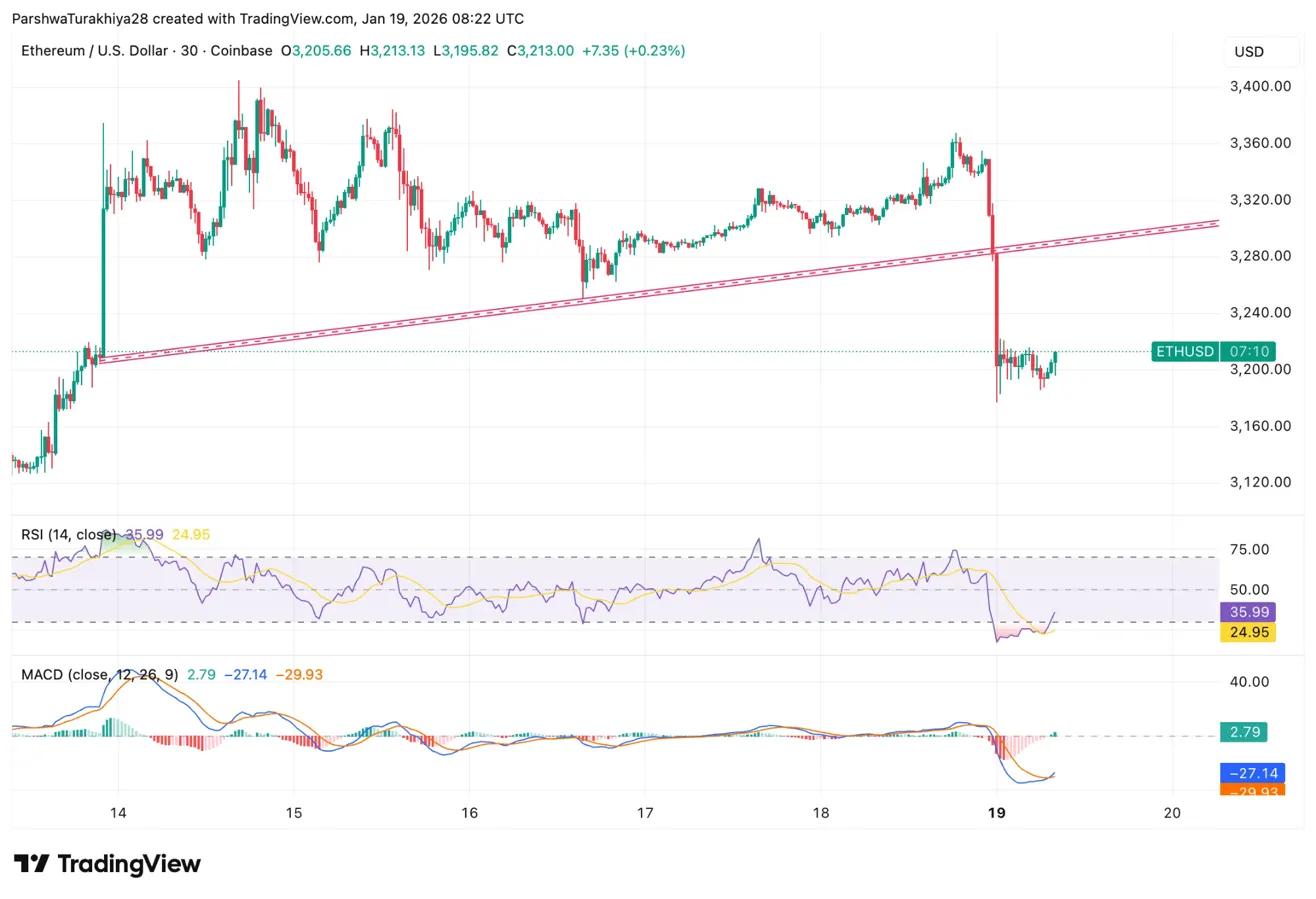 以太坊价格今日在下跌 2.25% 后,接近 3208 美元,此前该价格曾触及持续数周的对称三角形的下边界。此次下跌引发了大量多头清算,但现货交易情况则有所不同,买家纷纷入场吸收抛售压力。