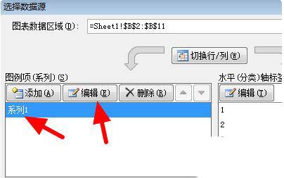 2、在弹出的窗口中点击“系列1”,之后点击“编辑”。