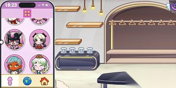 随便点击一个房间进入,看到人物身上衣服好看,拿一套衣服给她换上,她的衣服就会被换下
