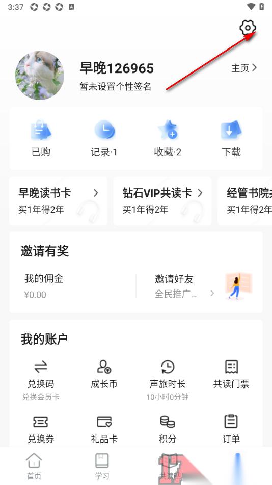 1.当我们进入到早晚读书app这款软件之后,在打开的页面上即可查看到底部显示的我的选项点击打开即可进入个人信息页面。