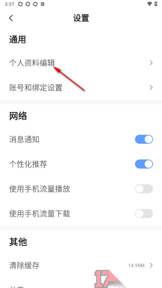 3.这时候页面上即可显示出通用和网络两个模块内容,直接点击通用设置下的【个人资料编辑】选项。