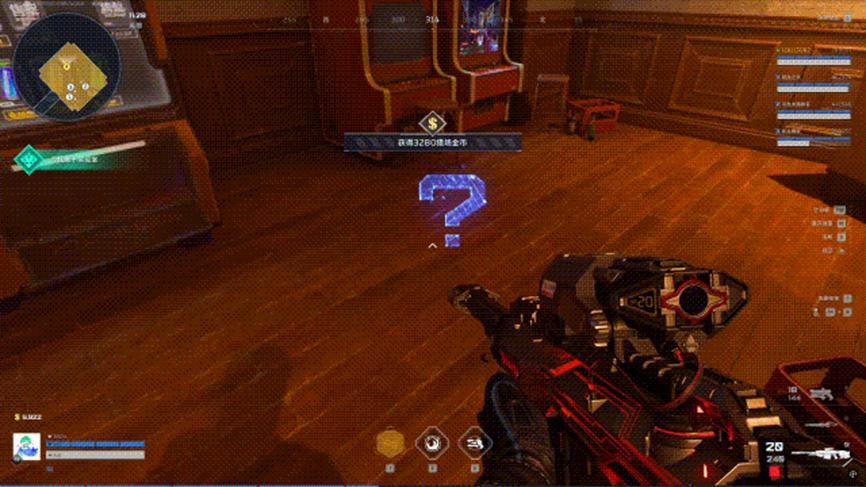 进入彩蛋房后,地上会有三个蓝色的问号,触碰问号就能获得3280个猎场金币,用来提升我们的武器等级,一共可以获得将近一万的猎场金币。
