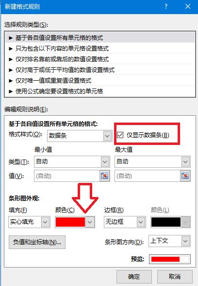 5.勾选仅显示数据条,并选择数据条颜色