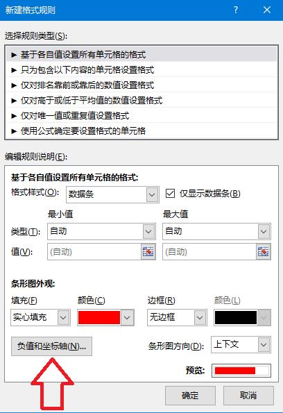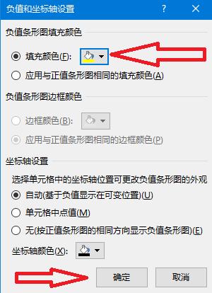 7.设置数据负值的数据条颜色,点击确定