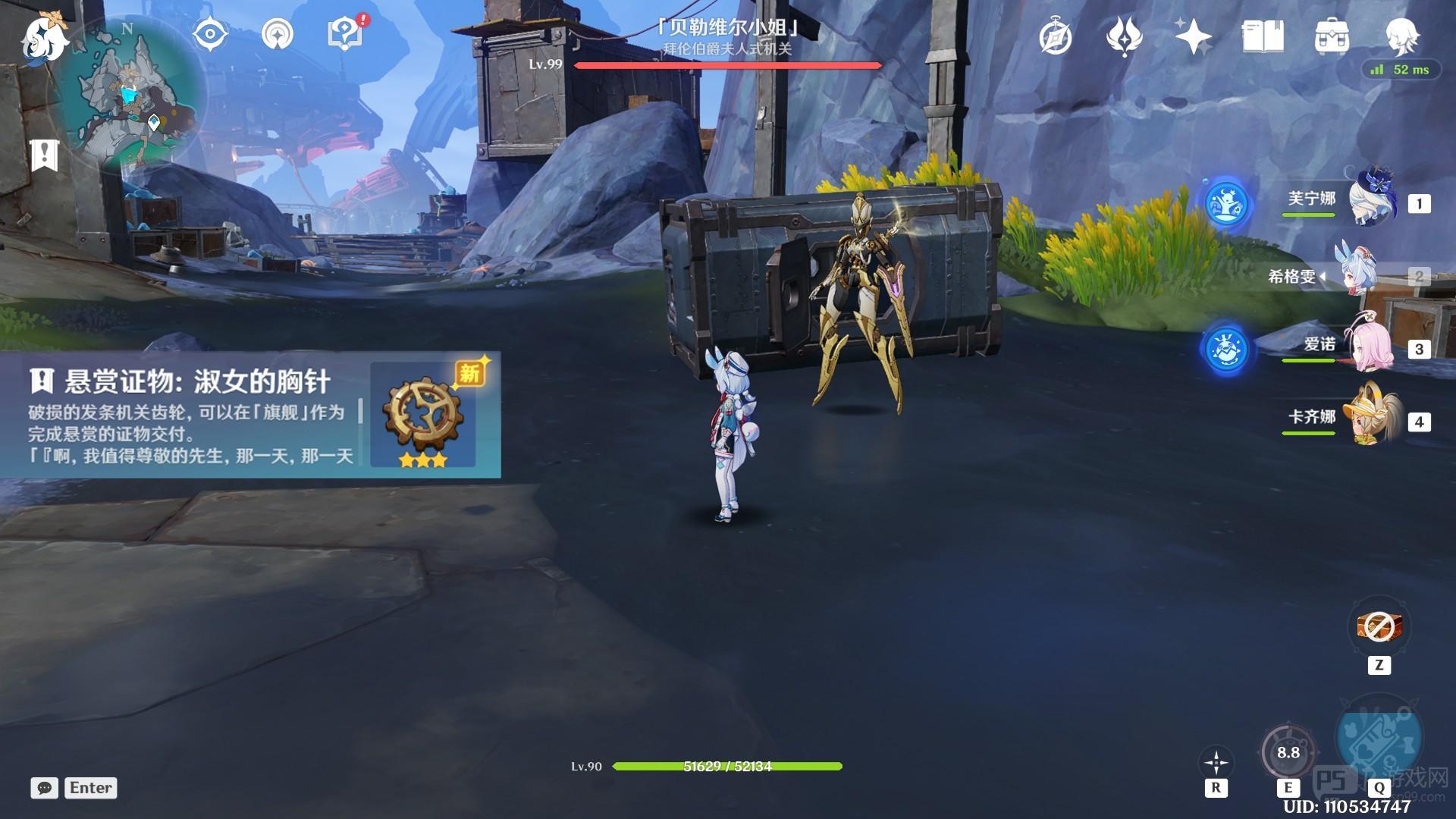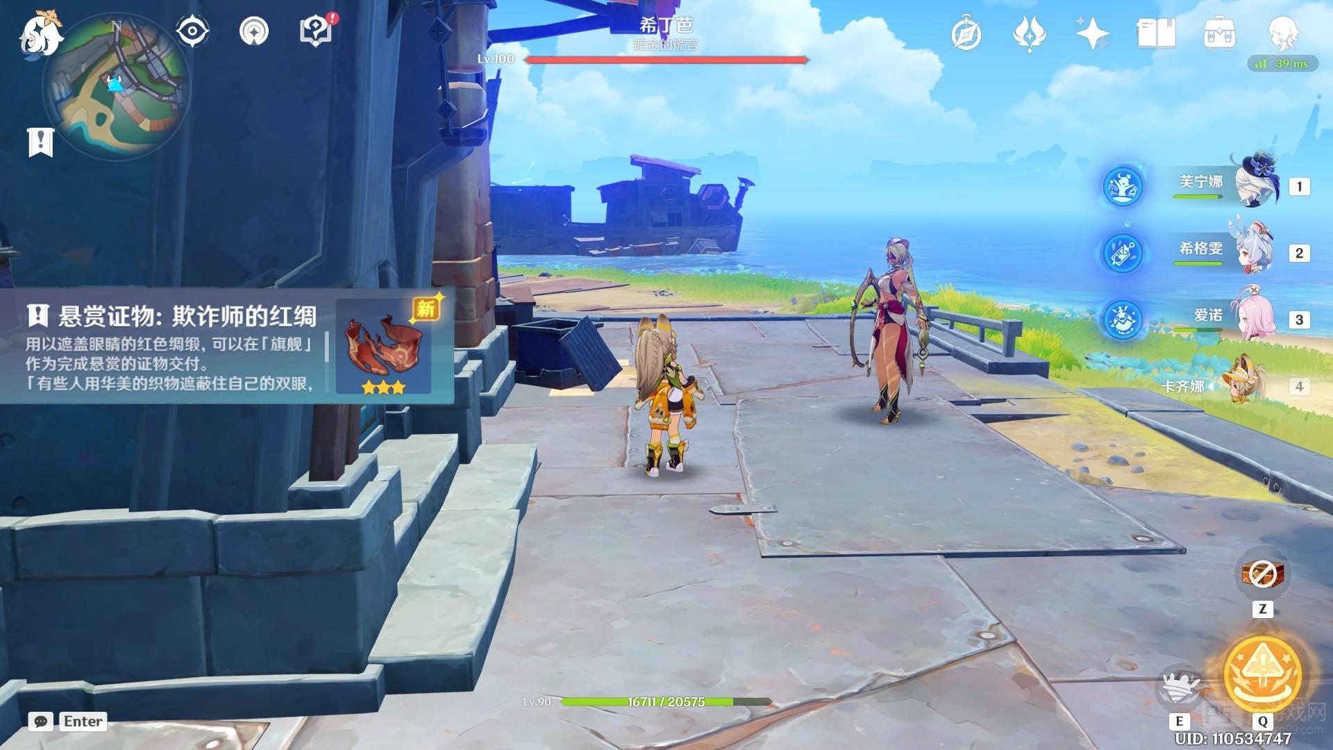 悬赏目标在位于那夏镇南方海滩上,沿着海滩传送点出来,朝西走来到下图位置,就能看见一个「镀金女团」靠近与她对话就会开始战斗。