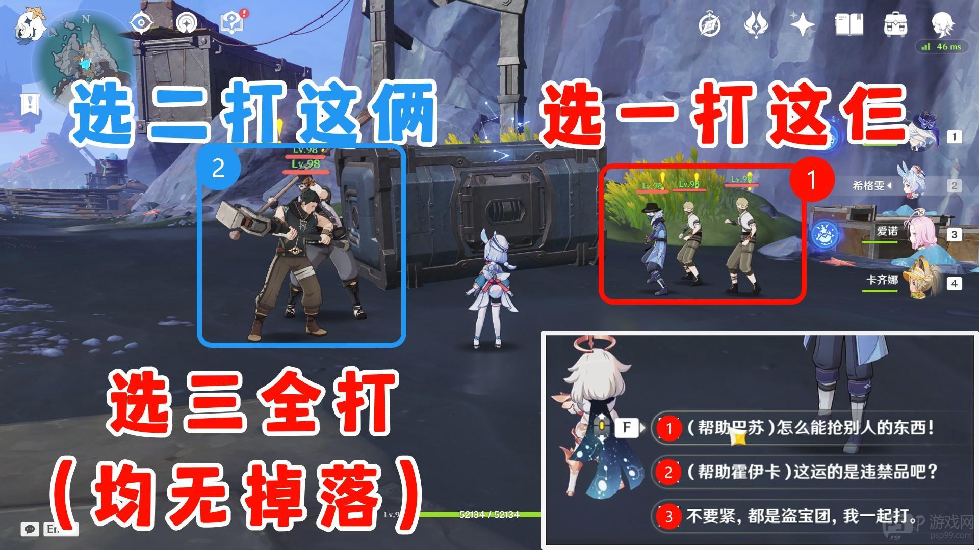 对话中有三个选项,前两个能少打点盗宝团(均无掉落)