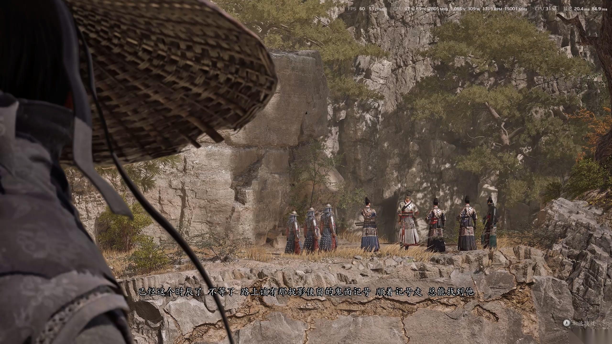 以这次的 DEMO 为例,故事背景是主人公和南镇抚司的一队精英锦衣卫都在追查躲进这座山中的叛逃千户邓阳,这是一场较量“速度”的比试。如果玩家对路线足够熟悉,无视所有小兵直接抄近道抢先跑到邓阳处,并且在将其击败之后选择“不杀”,那么接下来就会和邓阳一起面对追上来的锦衣卫小队。