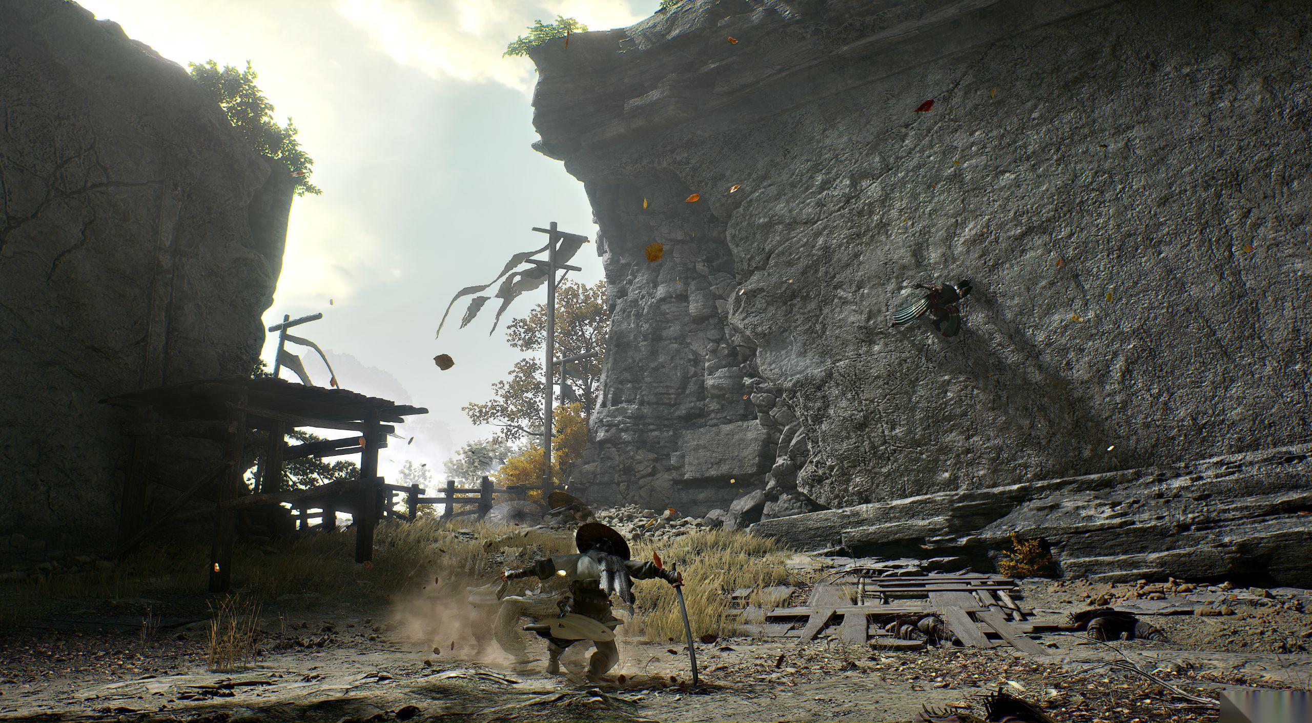 作为一款背后视角 ARPG,开发组为了体现传统武术招式的特点,采用了快节奏的战斗设计思路,光看动作部分还是可圈可点的,每一击都有迹可循,招架时的金属碰撞声以及完美闪避时的墨水特效都很符合“武侠”的整体氛围。