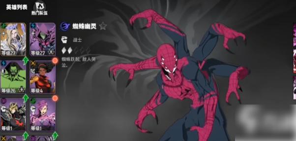 第二个选择蜘蛛幽灵,这是高爆发的近战输出英雄,对于单体,或者BOSS具有较好的克制作用,每损失4%生命值,就能触发一次闪避提升效果,被动的触发频率是比较高的;1技能对对手和相邻单位造成物理损伤;