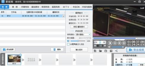 添加好视频后,可以裁剪原片了, 可以选择剪辑的时间,或者一个片段。也可以选择原声音轨,也可以消除声音。