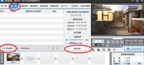 如果消除声音想加入一段音乐点击音频,像添加视频一样吧音乐添加进来就可以了,也可以剪辑音频。