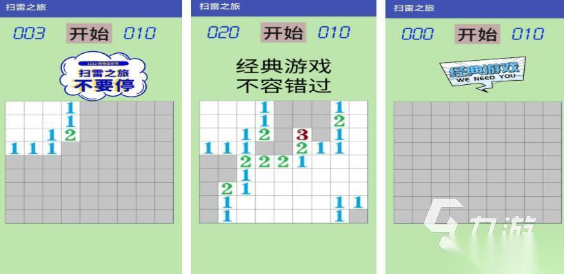 《扫雷之旅》与电脑扫雷玩法完全一致,玩家可以通过翻格子的方式来确定周围的地雷数量,其核心玩法就是分开所有安全格,并标记全部地雷。有初级、中级和高级等多个难度级别,提供了除了方块以外的矩形和心形等多种布局,玩家可以在不同的布局中逐一的点开方格,查看地雷的位置。这种简洁而不失挑战性的玩法,也能够让玩家锻炼自己的心理承受能力。