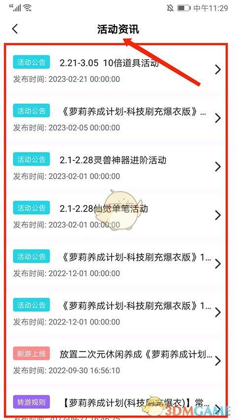 9、在【活动资讯】界面,可看到游戏的所有活动时间和公告,优先掌握游戏动态,