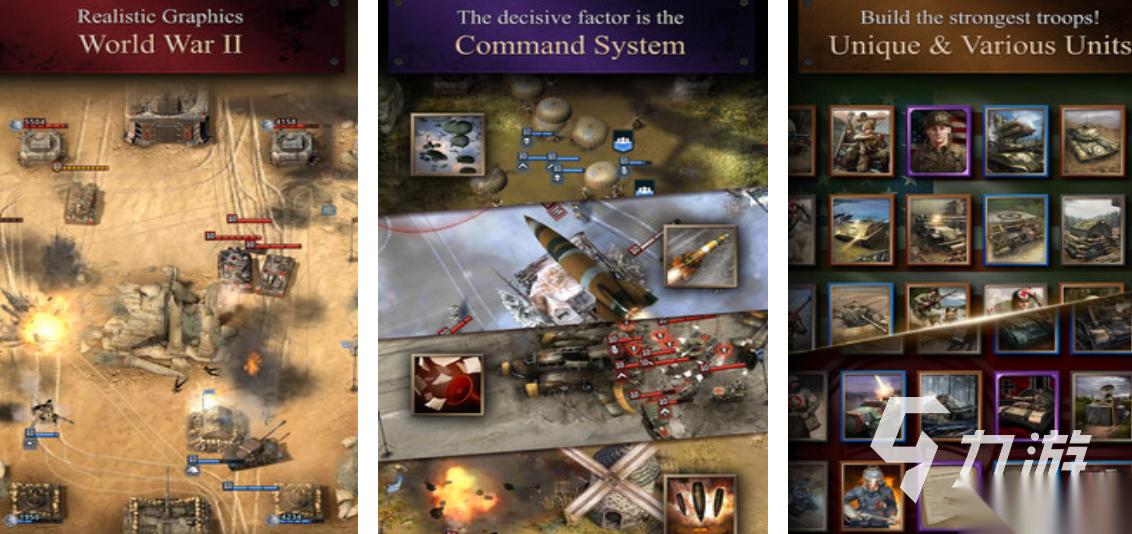 《世界大战军队:现代即时战略》使玩家直接成为掌控现代高精度武器的二战战区指挥官,进入硝烟弥漫和瞬息万变的模拟沙盘之后,玩家要考虑的事情就很多,不仅要对武装直升机突袭线路做出安排,还要顾及装甲部队燃料消耗,合理运用各种协同方式完成一次次惊心动魄的跨代打击之旅。该游戏的画面非常冷酷硬朗,在荒原上建造前哨站或者在废墟中搜索的时候要把握好时机,投入自己手中的特殊作战部队。