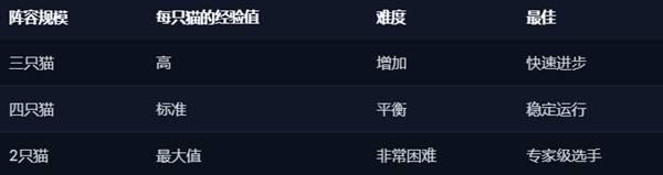 你不需要每次出行都带四只猫。带三只猫可以更快升级,因为你不用四人分战后升级。虽然这让跑动更难,但加速的成长往往弥补了小队规模的不足。