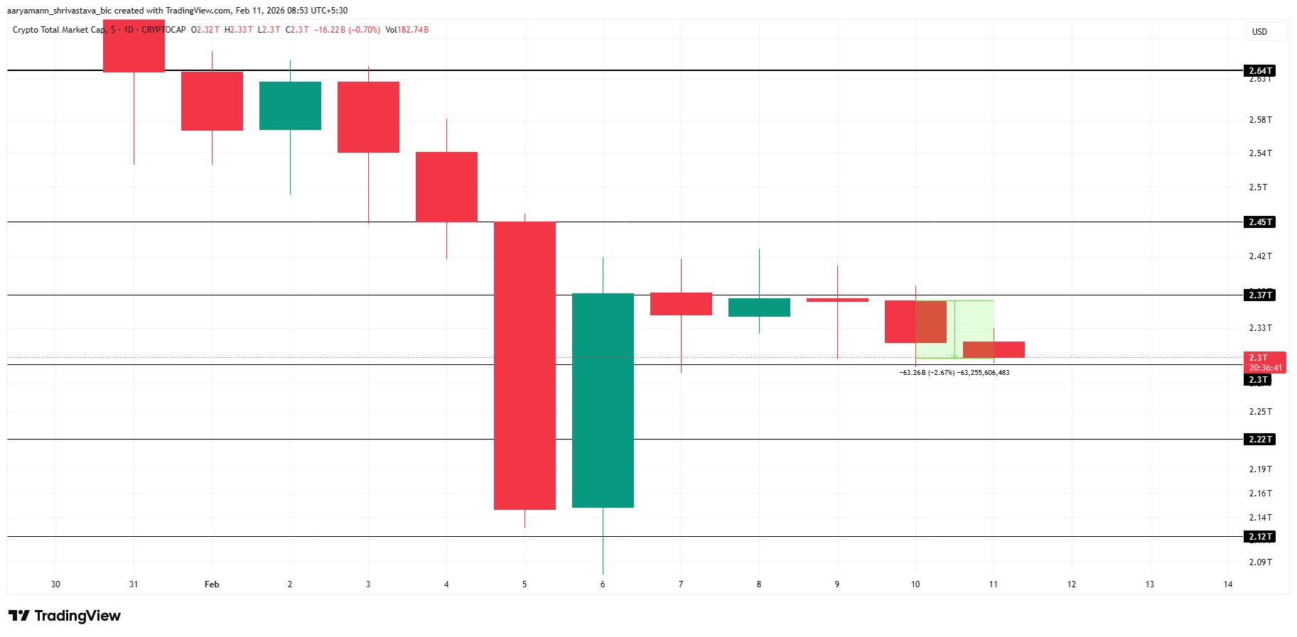 市场的整体低迷将加密市场总市值压制在 2.30 万亿美元左右的狭窄区间内震荡。