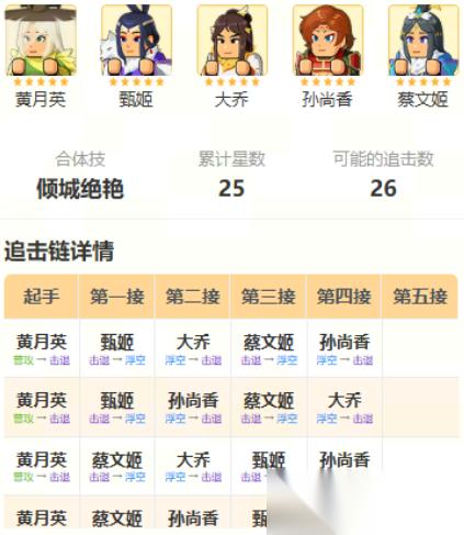 1.想要激活倾城绝艳合体技,队伍内需要上阵黄月英、甄姬、大乔、小乔、孙尚香、貂蝉、蔡文姬其中四位将领(问鼎赛季会加入祝融)。