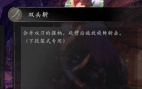 中段野风起手转下端霜风接双头斩,再转中段霜风接野风,然后就是循环,好了,现在可以完虐所有无霸体人形boss了。注意这个双头斩是地狱武器,前期刷出来就是无敌