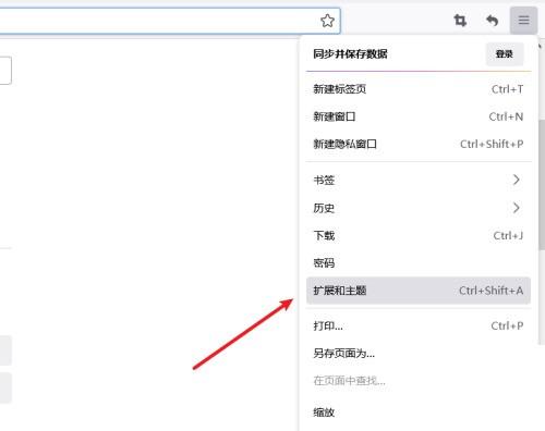 2、然后打开菜单选择扩展和主题选项。