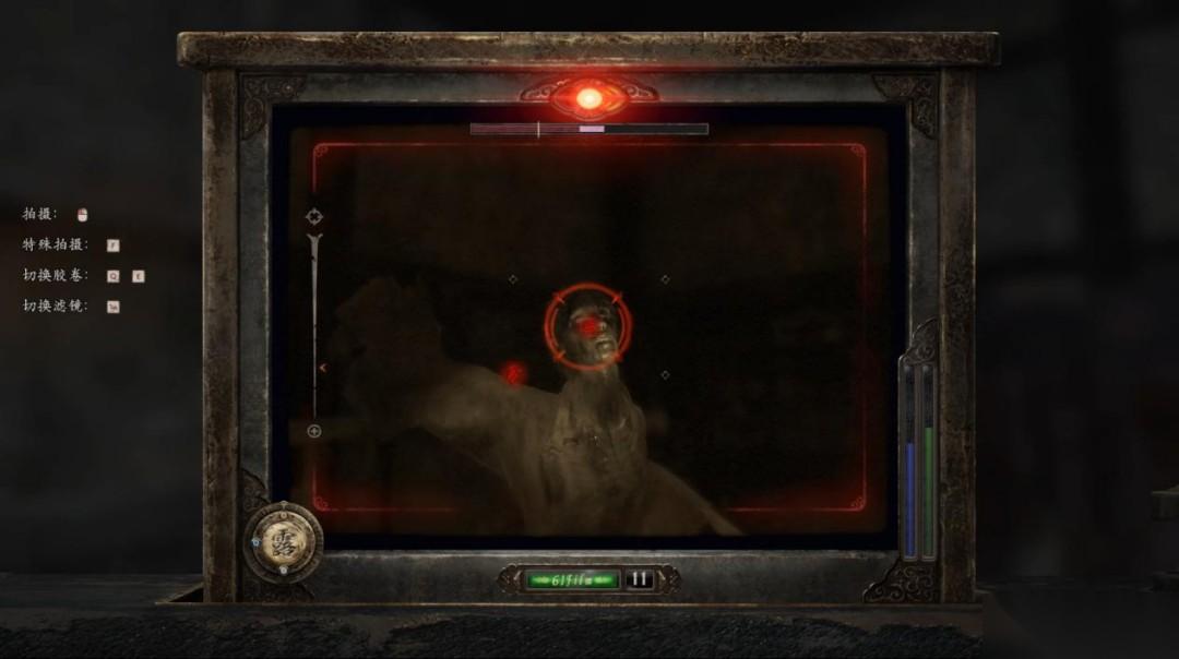 在原版《零 ~红蝶~》中,有个非常核心的战斗机制,叫作“致命摄击”(フェイタルフレーム),这个名字同时也是“零”系列海外版的标题,指的是在敌人即将发起攻击的瞬间进行拍摄,可以大幅提升攻击力,这一机制的引入象征着“零”系列战斗系统走向成熟,甚至可以说,之后整个系列的战斗系统都在围绕着“致命摄击”做文章,这也使得系列每作之间的战斗体验,不会存在断层式的变化,最多也就是难度与节奏的浮动。