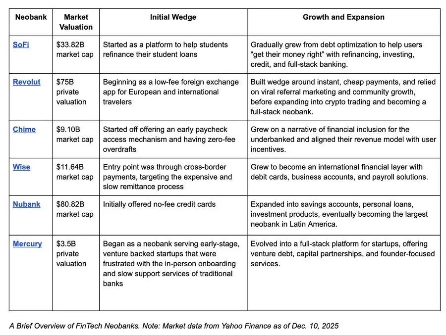 随着 Rain 和 Reap 等加密货币卡发行商的日趋成熟,以及 Visa 和万事达卡对稳定币支持的扩展,加密货币卡正逐渐成为一种同质化产品。真正的差异化体现在如何推动和维持交易量——无论是通过新颖的返现机制、地域性的“本地化运营”,还是吸引非加密货币原生用户加入这些平台。这一发展轨迹与金融科技新银行的崛起如出一辙,它们的成功并非在于发行卡片或开发应用程序,而在于赢得特定客户群体——从学生(SoFi)到低收入家庭(Chime)再到国际旅行者(Wise 和 Revolut)——并在此基础上建立信任、忠诚度和扩大交易量。如果运作得当,这些“支付优先”的新银行有望成为推动加密货币普及的重要力量,进而促进区块链基础设施的采用。