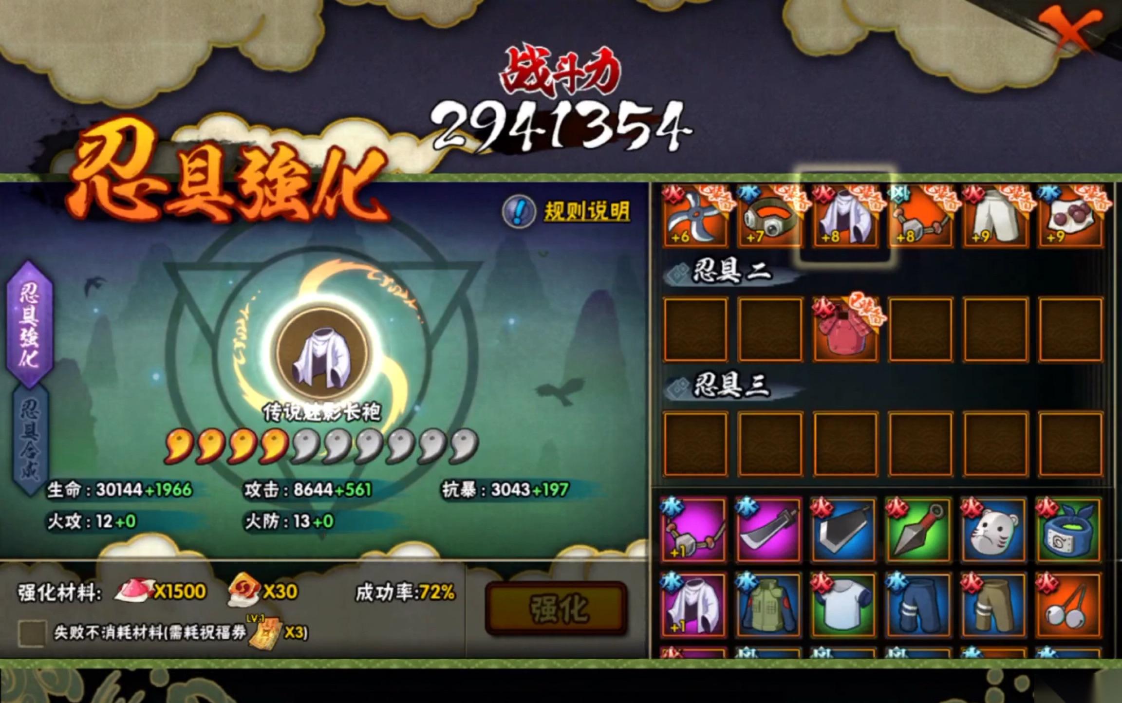 强化忍具时,1到15级可以不用保护符直接强化,15级之后则建议使用保护符来确保成功率。将忍具强化至12级是一个性价比很高的节点,之后收益会下降。继承是战力传承的关键,必须遵循品级相同或更高的原则,例如将强化过的90级究忍具继承到135级究忍具上,这样只会损失少量等级,若跨品级继承可能导致战力下降。洗练方面,要优先追求暴击和攻击属性,洗练符较为珍贵,应锁住好的词条再进行操作,避免资源浪费。