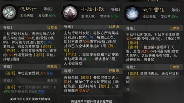 【连环计】可随机攻击三名敌方单位,并在智力比拼获胜后,为敌方目标施加独特的【连环】状态(使该单位受到伤害的16%传递给其他拥有【连环】的单位)及珍贵的15%【易伤】效果。