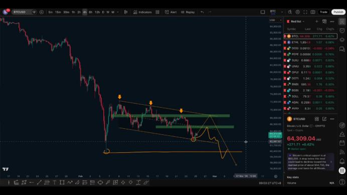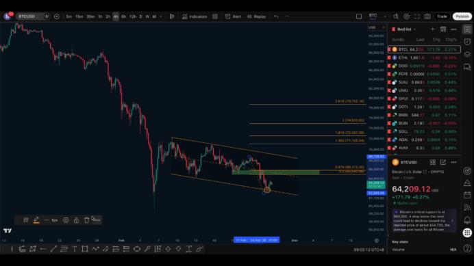 如果价格强势突破65,600-66,400区间,那么上方仍存在一个极限压力位——大约在68,500附近。