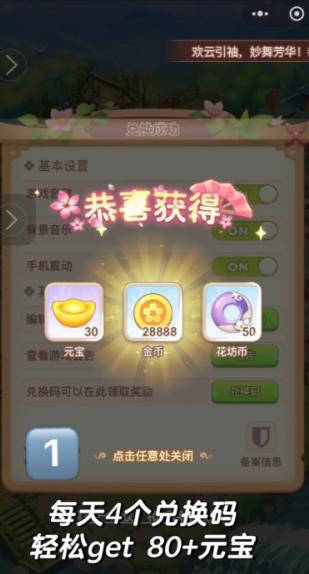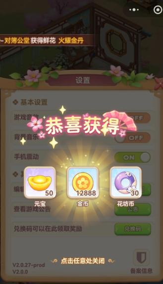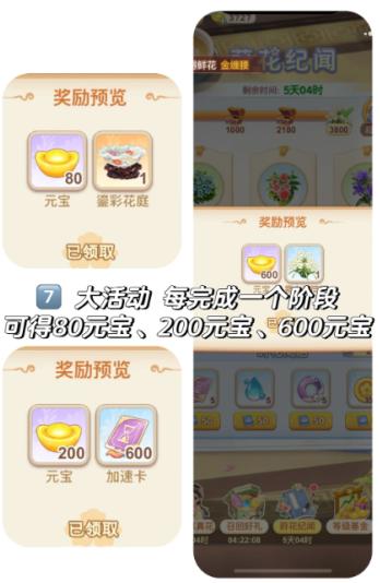 礼包内容:元宝*50,加速卡*10,花坊币*10