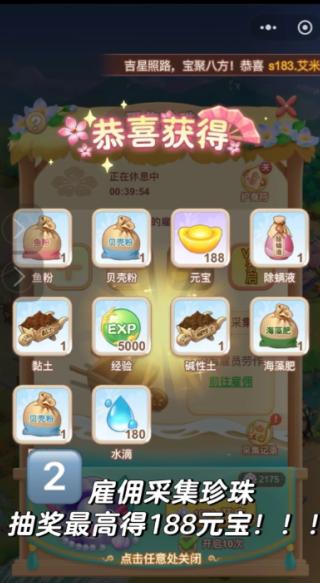 2,采集珍珠抽奖:这个要看运气啦!多的话188元宝,少的话没;