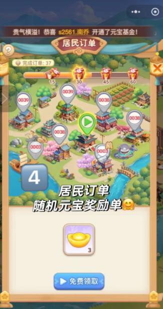 4,做居民订单:除了建筑和布料外的其它6个订单,每天都有机会有奖励元宝的订单;