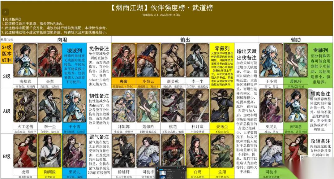 在烟雨江湖手游的最新伙伴强度格局中,商昊干(商)仍稳居T0级核心地位,李一尘、秦无双、央蛮构成T0.5梯队,巫灵儿、姜逸尘、火工老僧等位列T1,具体可以查看烟雨江湖伙伴强度榜一图流2026最新。