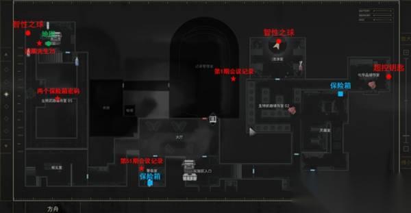 穿过[大厅] 到达[警备室] 阅读☆访问日志:第51期会议记录 获得硫酸瓶配方 □保险箱(左50右60左80/右20左0右70) 打开全保险箱获得成就【没有绝对的保险】